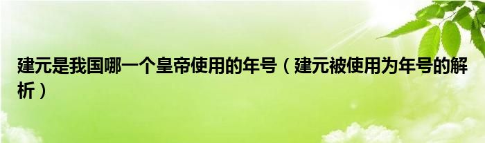 大家好,伊人來為大家解答以上問題。建元是我國哪一個皇帝使用的年號,建元被使用為年號的解析很多人還不知道,現(xiàn)在讓我們一起來看看吧!
