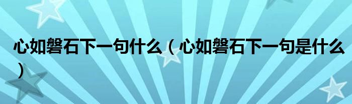 大家好,小生來(lái)為大家講解下。心如磐石下一句什么,心如磐石下一句是什么很多人還不知道,現(xiàn)在讓我們一起來(lái)看看吧!