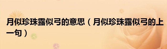 大家好,小生來為大家講解下。月似珍珠露似弓的意思,月似珍珠露似弓的上一句很多人還不知道,現(xiàn)在讓我們一起來看看吧!