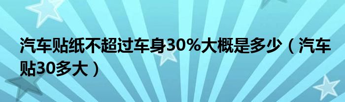 大家好,小生來為大家講解下。汽車貼紙不超過車身30%大概是多少,汽車貼30多大很多人還不知道,現(xiàn)在讓我們一起來看看吧!