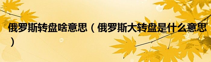 大家好,小生來為大家講解下。俄羅斯轉(zhuǎn)盤啥意思,俄羅斯大轉(zhuǎn)盤是什么意思很多人還不知道,現(xiàn)在讓我們一起來看看吧!
