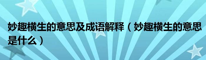 大家好,小生來為大家講解下。妙趣橫生的意思及成語解釋,妙趣橫生的意思是什么很多人還不知道,現(xiàn)在讓我們一起來看看吧!