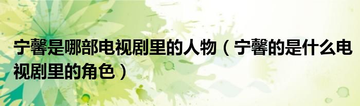 大家好,小生來為大家講解下。寧馨是哪部電視劇里的人物,寧馨的是什么電視劇里的角色很多人還不知道,現(xiàn)在讓我們一起來看看吧!