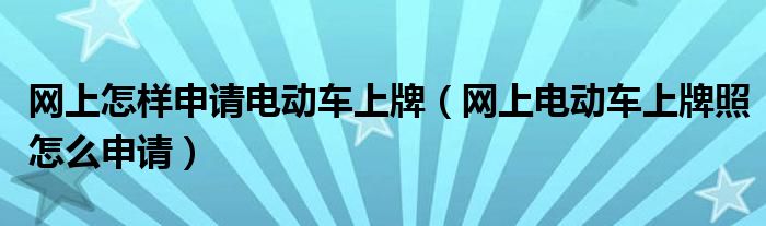 大家好,小生來為大家講解下。網(wǎng)上怎樣申請電動(dòng)車上牌,網(wǎng)上電動(dòng)車上牌照怎么申請很多人還不知道,現(xiàn)在讓我們一起來看看吧!