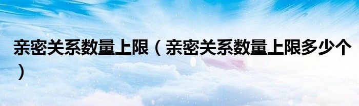大家好,小生來為大家講解下。親密關(guān)系數(shù)量上限,親密關(guān)系數(shù)量上限多少個很多人還不知道,現(xiàn)在讓我們一起來看看吧!