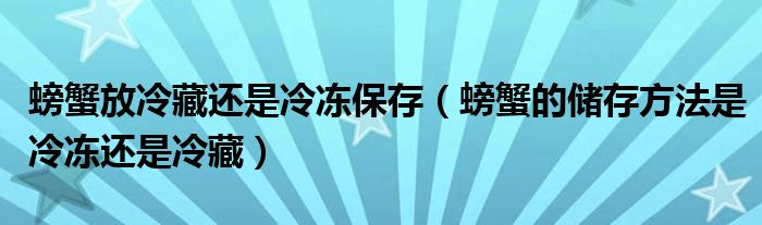 大家好,小生來為大家講解下。螃蟹放冷藏還是冷凍保存,螃蟹的儲存方法是冷凍還是冷藏很多人還不知道,現(xiàn)在讓我們一起來看看吧!