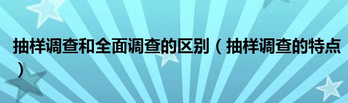大家好,小生來為大家講解下。抽樣調(diào)查和全面調(diào)查的區(qū)別,抽樣調(diào)查的特點很多人還不知道,現(xiàn)在讓我們一起來看看吧!