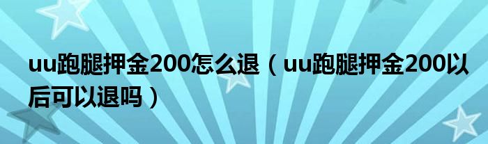大家好,小生來為大家講解下。uu跑腿押金200怎么退,uu跑腿押金200以后可以退嗎很多人還不知道,現在讓我們一起來看看吧!