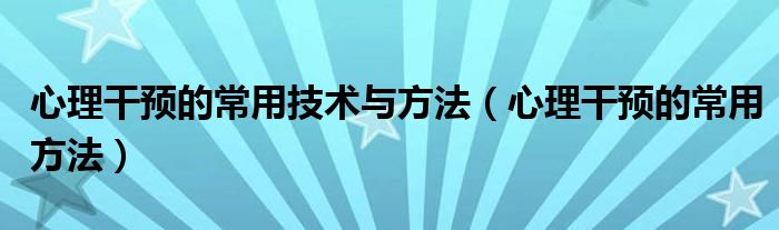 大家好,小生來為大家講解下。心理干預(yù)的常用技術(shù)與方法,心理干預(yù)的常用方法很多人還不知道,現(xiàn)在讓我們一起來看看吧!