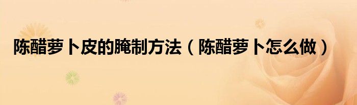 大家好,小生來為大家講解下。陳醋蘿卜皮的腌制方法,陳醋蘿卜怎么做很多人還不知道,現(xiàn)在讓我們一起來看看吧!