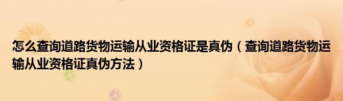 大家好,伊人來為大家解答以上問題。怎么查詢道路貨物運(yùn)輸從業(yè)資格證是真?zhèn)?,查詢道路貨物運(yùn)輸從業(yè)資格證真?zhèn)畏椒ê芏嗳诉€不知道,現(xiàn)在讓我們一起來看看吧!