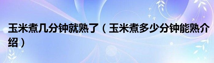 大家好,伊人來為大家解答以上問題。玉米煮幾分鐘就熟了,玉米煮多少分鐘能熟介紹很多人還不知道,現(xiàn)在讓我們一起來看看吧!