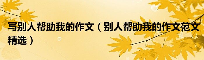 大家好,伊人來(lái)為大家解答以上問(wèn)題。寫(xiě)別人幫助我的作文,別人幫助我的作文范文精選很多人還不知道,現(xiàn)在讓我們一起來(lái)看看吧!