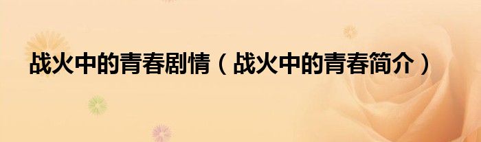 大家好,伊人來為大家解答以上問題。戰(zhàn)火中的青春劇情,戰(zhàn)火中的青春簡(jiǎn)介很多人還不知道,現(xiàn)在讓我們一起來看看吧!