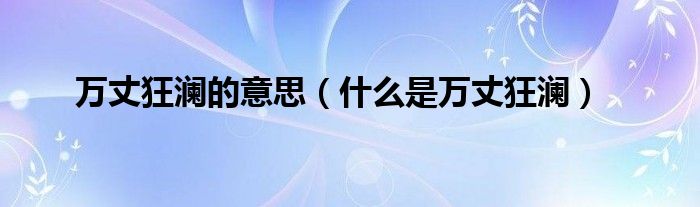 大家好,伊人來為大家解答以上問題。萬丈狂瀾的意思,什么是萬丈狂瀾很多人還不知道,現(xiàn)在讓我們一起來看看吧!