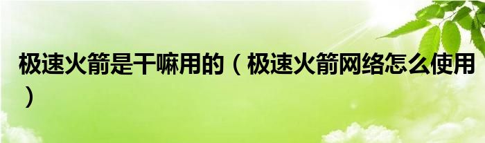 大家好,小育來為大家講解下。極速火箭是干嘛用的,極速火箭網(wǎng)絡怎么使用很多人還不知道,現(xiàn)在讓我們一起來看看吧!