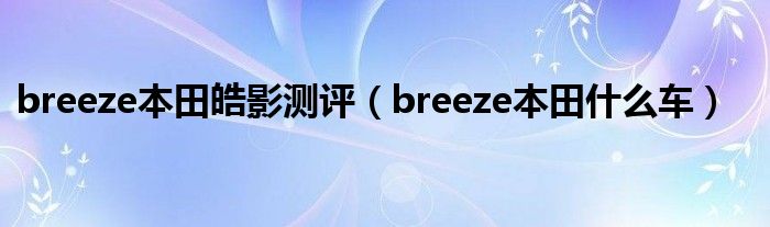 大家好,小育來為大家講解下。breeze本田皓影測評,breeze本田什么車很多人還不知道,現(xiàn)在讓我們一起來看看吧!