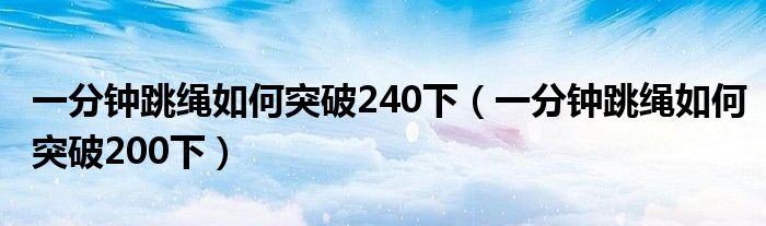 大家好,小育來為大家講解下。一分鐘跳繩如何突破240下,一分鐘跳繩如何突破200下很多人還不知道,現(xiàn)在讓我們一起來看看吧!