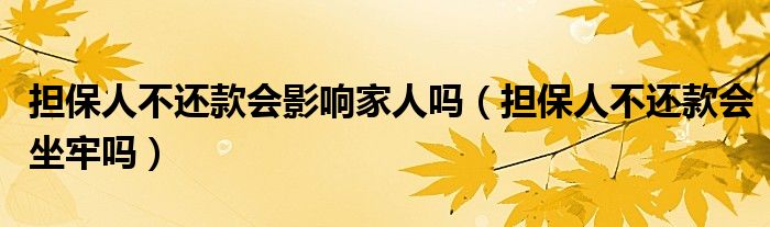 大家好,小育來為大家講解下。擔(dān)保人不還款會(huì)影響家人嗎,擔(dān)保人不還款會(huì)坐牢嗎很多人還不知道,現(xiàn)在讓我們一起來看看吧!