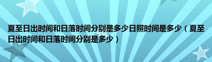 大家好,小育來為大家講解下。夏至日出時間和日落時間分別是多少日照時間是多少,夏至日出時間和日落時間分別是多少很多人還不知道,現(xiàn)在讓我們一起來看看吧!