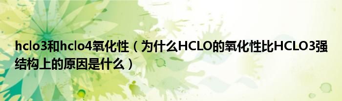 大家好,小育來為大家講解下。hclo3和hclo4氧化性,為什么HCLO的氧化性比HCLO3強(qiáng)結(jié)構(gòu)上的原因是什么很多人還不知道,現(xiàn)在讓我們一起來看看吧!