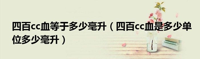 大家好,小育來為大家講解下。四百cc血等于多少毫升,四百cc血是多少單位多少毫升很多人還不知道,現(xiàn)在讓我們一起來看看吧!