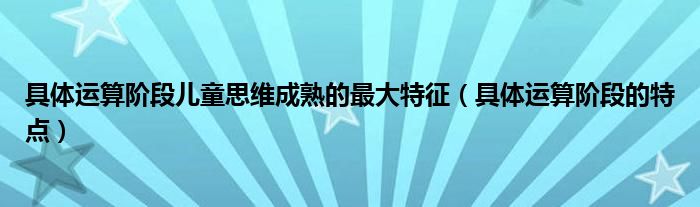 大家好,小育來為大家講解下。具體運(yùn)算階段兒童思維成熟的最大特征,具體運(yùn)算階段的特點(diǎn)很多人還不知道,現(xiàn)在讓我們一起來看看吧!