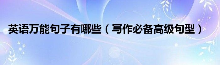 大家好,伊人來(lái)為大家解答以上問(wèn)題。英語(yǔ)萬(wàn)能句子有哪些,寫作必備高級(jí)句型很多人還不知道,現(xiàn)在讓我們一起來(lái)看看吧!