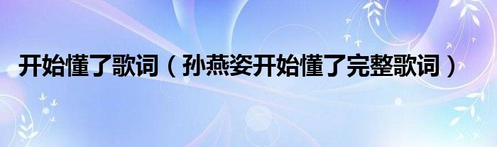 大家好,伊人來為大家解答以上問題。開始懂了歌詞,孫燕姿開始懂了完整歌詞很多人還不知道,現(xiàn)在讓我們一起來看看吧!