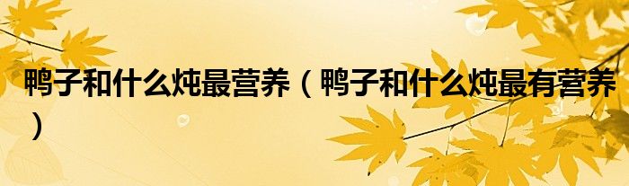 大家好,小育來為大家講解下。鴨子和什么燉最營養(yǎng),鴨子和什么燉最有營養(yǎng)很多人還不知道,現(xiàn)在讓我們一起來看看吧!