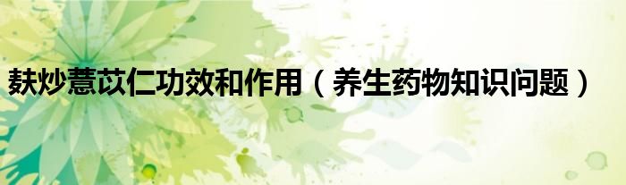 大家好,伊人來(lái)為大家解答以上問(wèn)題。麩炒薏苡仁功效和作用,養(yǎng)生藥物知識(shí)問(wèn)題很多人還不知道,現(xiàn)在讓我們一起來(lái)看看吧!