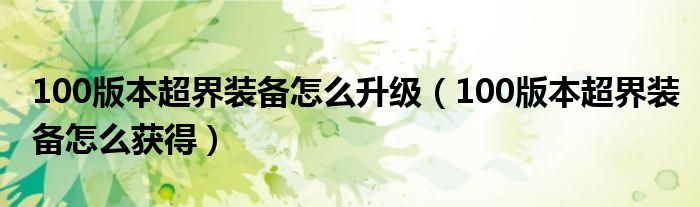 大家好,小育來為大家講解下。100版本超界裝備怎么升級,100版本超界裝備怎么獲得很多人還不知道,現(xiàn)在讓我們一起來看看吧!