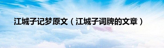 大家好,伊人來為大家解答以上問題。江城子記夢原文,江城子詞牌的文章很多人還不知道,現(xiàn)在讓我們一起來看看吧!