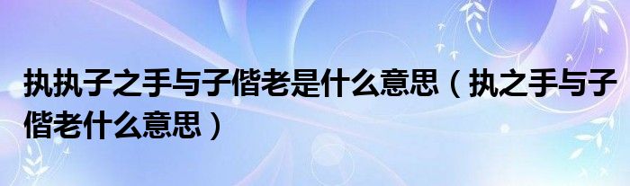 大家好,小育來為大家講解下。執(zhí)執(zhí)子之手與子偕老是什么意思,執(zhí)之手與子偕老什么意思很多人還不知道,現(xiàn)在讓我們一起來看看吧!