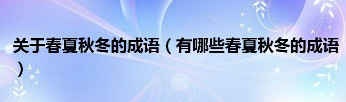 大家好,伊人來為大家解答以上問題。關(guān)于春夏秋冬的成語,有哪些春夏秋冬的成語很多人還不知道,現(xiàn)在讓我們一起來看看吧!