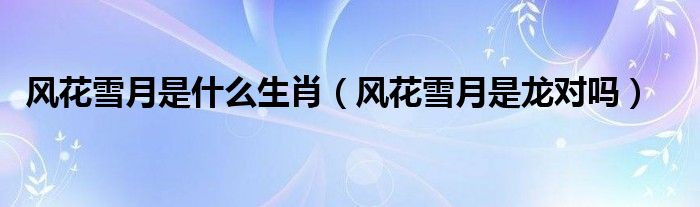 大家好,伊人來為大家解答以上問題。風(fēng)花雪月是什么生肖,風(fēng)花雪月是龍對嗎很多人還不知道,現(xiàn)在讓我們一起來看看吧!