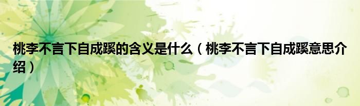 大家好,伊人來為大家解答以上問題。桃李不言下自成蹊的含義是什么,桃李不言下自成蹊意思介紹很多人還不知道,現(xiàn)在讓我們一起來看看吧!