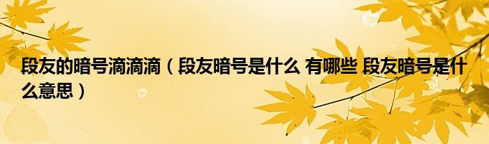 大家好,小育來(lái)為大家講解下。段友的暗號(hào)滴滴滴,段友暗號(hào)是什么 有哪些 段友暗號(hào)是什么意思很多人還不知道,現(xiàn)在讓我們一起來(lái)看看吧!