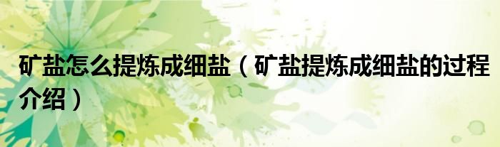 大家好,伊人來(lái)為大家解答以上問(wèn)題。礦鹽怎么提煉成細(xì)鹽,礦鹽提煉成細(xì)鹽的過(guò)程介紹很多人還不知道,現(xiàn)在讓我們一起來(lái)看看吧!