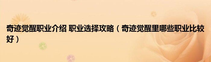 大家好,小育來為大家講解下。奇跡覺醒職業(yè)介紹 職業(yè)選擇攻略,奇跡覺醒里哪些職業(yè)比較好很多人還不知道,現(xiàn)在讓我們一起來看看吧!