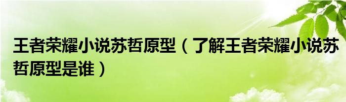 大家好,伊人來為大家解答以上問題。王者榮耀小說蘇哲原型,了解王者榮耀小說蘇哲原型是誰很多人還不知道,現(xiàn)在讓我們一起來看看吧!