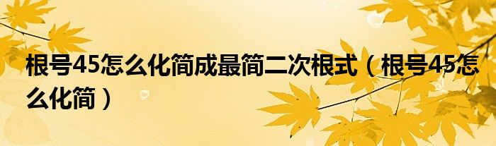 大家好,小育來為大家講解下。根號45怎么化簡成最簡二次根式,根號45怎么化簡很多人還不知道,現在讓我們一起來看看吧!