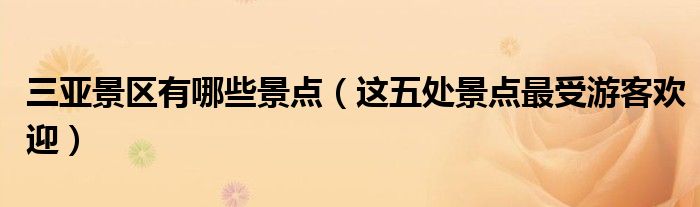 大家好,伊人來為大家解答以上問題。三亞景區(qū)有哪些景點,這五處景點最受游客歡迎很多人還不知道,現(xiàn)在讓我們一起來看看吧!