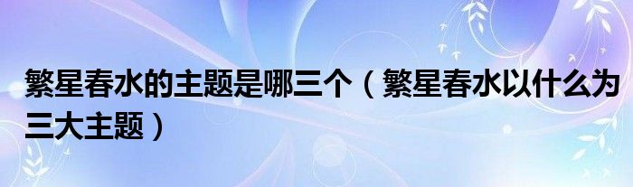 大家好,小育來(lái)為大家講解下。繁星春水的主題是哪三個(gè),繁星春水以什么為三大主題很多人還不知道,現(xiàn)在讓我們一起來(lái)看看吧!