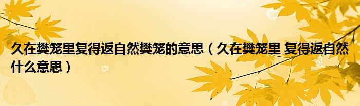 大家好,小育來(lái)為大家講解下。久在樊籠里復(fù)得返自然樊籠的意思,久在樊籠里 復(fù)得返自然什么意思很多人還不知道,現(xiàn)在讓我們一起來(lái)看看吧!