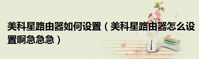 大家好,小育來為大家講解下。美科星路由器如何設(shè)置,美科星路由器怎么設(shè)置啊急急急很多人還不知道,現(xiàn)在讓我們一起來看看吧!