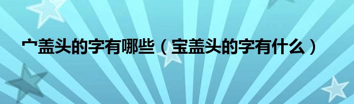 大家好,伊人來為大家解答以上問題。宀蓋頭的字有哪些,寶蓋頭的字有什么很多人還不知道,現(xiàn)在讓我們一起來看看吧!