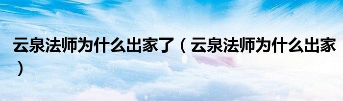 大家好,小育來為大家講解下。云泉法師為什么出家了,云泉法師為什么出家很多人還不知道,現(xiàn)在讓我們一起來看看吧!