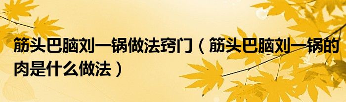 大家好,小育來為大家講解下。筋頭巴腦劉一鍋做法竅門,筋頭巴腦劉一鍋的肉是什么做法很多人還不知道,現(xiàn)在讓我們一起來看看吧!