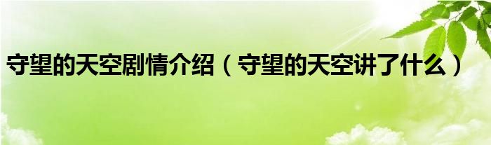 大家好,伊人來為大家解答以上問題。守望的天空劇情介紹,守望的天空講了什么很多人還不知道,現(xiàn)在讓我們一起來看看吧!